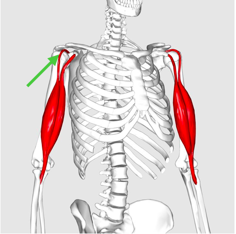 上圖中綠色箭頭的位置是二頭肌長頭,在肱骨上方包著肱骨