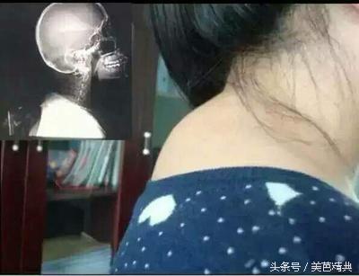 在頸椎後面突起一大塊,其實是第七頸椎到上胸椎歪斜所造成的