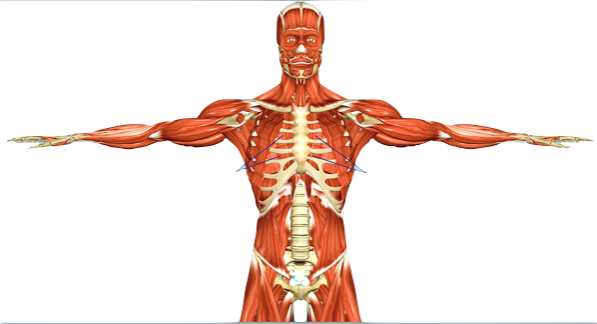 由於很多筋膜、肌肉與骨架之間的連結,手指/手臂的動作常常都會影響到胸肋的活動