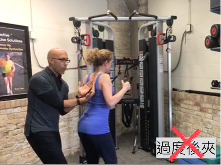 『 記得不要做出肩胛骨下壓、內夾的動作唷 !』